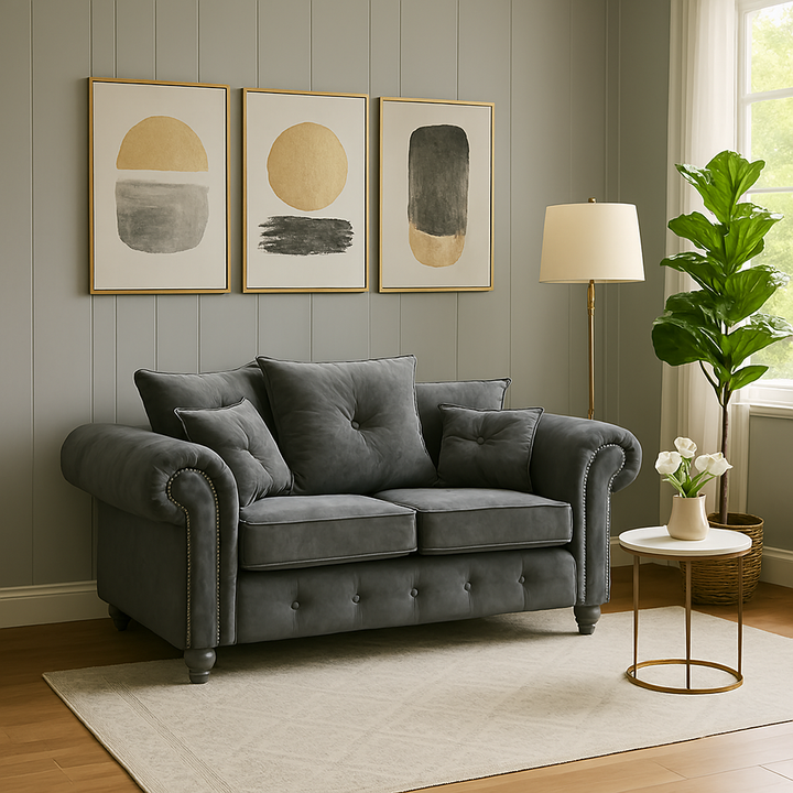 Each piece within the Ashwin Sofa Sets collection is adorned with high-quality FR (fire-resistant) fabric, ensuring both elegance and peace of mind. This top-tier fabric not only enhances the aesthetics of your home decor but also meets essential safety standards, making it an ideal choice for modern households.